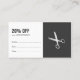 Minimal dark grey/white appointment card coupon for hair stylist. Design with faux silver scissor pattern.