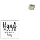 This minimal "Handmade" rubber stamp features lettering with a custom script name.