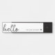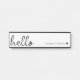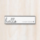 A minimal door sign design with a stylish handwritten script large typograhy quote "hello" paired with your own name and a simple black heart. Designed in a modern mininalist style in clean simple black and white. The perfect personalized gift or accessory for any time of year!