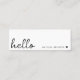 A minimal mini business card design with a stylish handwritten script large typograhy quote "hello" paired with your own name and a simple black heart. Designed in a modern mininalist style in clean simple black and white. The perfect personalized gift or accessory for any time of year!