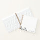 A minimal notebook design with a stylish handwritten script large typograhy quote "hello" paired with your own name and a simple black heart. Designed in a modern mininalist style in clean simple black and white. The perfect personalized gift or accessory for any time of year!