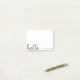 A minimal post-it note design with a stylish handwritten script large typograhy quote "hello" paired with your own name and a simple black heart. Designed in a modern mininalist style in clean simple black and white. The perfect personalized gift or accessory for any time of year!