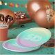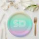 Holographic Ombre gradient in neon colours pink purple blue yellow with monogram modern trendy personalized wedding paper plates. This product is easily editable. If you need help with the customization of this product or you need more matching products from this collection kindly message me via Zazzle.