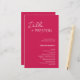 Modern Viva Magenta pink wedding program featuring a simple and minimal design with the bride's name in an elegant script and the groom's name in a contemporary sans serif font. Below in the lower right corner are your event details and order of ceremony in a minimalist layout. The back has your wedding party and thank you message.