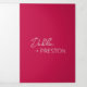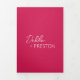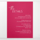 Modern Viva Magenta pink trifold wedding invitation featuring a simple and minimal design with the bride's name in an elegant script and the groom's name in a contemporary sans serif font. Below in the lower right corner are your event details in a minimalist layout. The middle panel has your favourite photo, the right panel is your RSVP card and the back has your additional details.