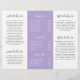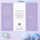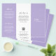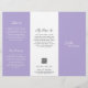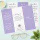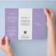 Modern and professional purple / lavender trifold brochure flyer featuring a simple and minimal design with your name in an elegant script and contemporary sans serif font. The template includes several divided sections for your services in a minimalist layout. The back has your contact info and optional QR code. If you prefer, the QR code may be removed in the design editing tool. The inside has sections for company info and a price list.