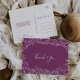 This minimal leaf berry purple thank you postcard is perfect for a boho wedding. The design features a simple greenery leaf silhouette in a romantic summer violet colour with minimalist bohemian garden style. Personalize the back of the postcard with your names, your return address, and a thank you message. Alternatively, leave the thank you message template section blank to hand write a thoughtful personalized note on each card after they arrive. These cards can be used for a wedding, bridal shower, or any special event.