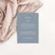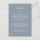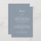 This minimal leaf blue and white details enclosure card is perfect for an elegant wedding. The design features a simple greenery silhouette in white on a dusty blue background with classic minimalist style.