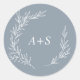 These minimal leaf blue and white monogram envelope seals are perfect for an elegant wedding. The design features a simple greenery silhouette in white on a dusty blue background with classic minimalist style. Personalize the label with the initials of the couple.