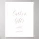 This minimal leaf blush pink cards and gifts sign is perfect for an elegant wedding or bridal shower. The design features a simple greenery silhouette in light blush pink with classic minimalist style. The line of text at the bottom of the sign can be personalized with the date, the names of the bride and groom, or a short message like "Thank you". This sign can be used for a wedding or any event or party.