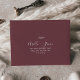 These minimal leaf burgundy self-addressed RSVP envelopes are perfect for a boho wedding. The bohemian design features a simple greenery silhouette in a dark red wine colour with classic minimalist boho style. Personalize with the name of the bride and groom and RSVP address.