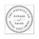 Modern return address stamp featuring your name in a stylish script and your address in simple typography. Save time and effort by effortlessly personalizing your return address. Perfect for wedding invitations, party announcements, everyday correspondence and business mailings.