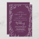 This minimal leaf dark eggplant wedding invitation card is perfect for a boho wedding. The design features a simple greenery leaf silhouette in a romantic eggplant purple colour with minimalist bohemian garden style.