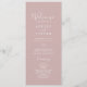 This minimal leaf dusty rose wedding program is perfect for a boho wedding. The romantic design features a simple greenery silhouette in solid blush pink mauve with classic minimalist boho style. Include the name of the couple, the wedding date and location, thank you message, order of service, wedding party and an optional "in loving memory" memorial.