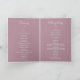 This minimal leaf mauve folded wedding program is perfect for a boho wedding. The design features a simple greenery leaf silhouette in a romantic purple pink colour with minimalist bohemian garden style.