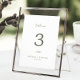 This minimal leaf olive green wedding table number is perfect for a boho wedding. The design features a simple greenery leaf silhouette in olive green with minimalist mountain bohemian style. The card prints on the front and back (double-sided). Items are printed exactly as they appear on your screen when you add to cart, so personalize and add each table number that you need to your cart individually.