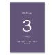 This minimal leaf plum purple wedding table number is perfect for a boho wedding. The jewel tone design features a simple greenery leaf silhouette in a dark blue violet purple with minimalist boho style. The card prints on the front and back (double-sided). Items are printed exactly as they appear on your screen when you add to cart, so personalize and add each table number that you need to your cart individually.