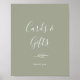 This minimal leaf sage green cards and gifts poster sign is perfect for a boho wedding or bridal shower. The design features a simple greenery leaf silhouette in a dusty green colour with minimalist mountain boho style. The line of text at the bottom of the sign can be personalized with the date, the names of the bride and groom, or a short message like "Thank you". This sign can be used for a wedding or any event or party.
