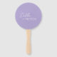 Modern lavender / purple wedding hand fan featuring a simple and minimal design with the bride's name in an elegant script and the groom's name in a contemporary sans serif font. The back has your favourite photo. A minimalist design that goes well with any style of wedding.