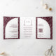 Minimal Line Art Leaf Arch Burgundy Wedding Tri-Fold Invitation