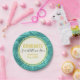 Add some theme to your party while making clean up a breeze. Cream and gold circles frame the typography design on this plate. It features your grad's name, school, and year. It is all nestled on a beautiful trendy hypnotic teal marbled abstract background.