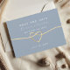 Elegant, minimal, modern typography dusty blue wedding save the date invitation, with gold rope heart and simple handwritten script.