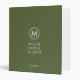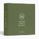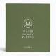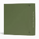 Modern recipe binder features a minimalist design in an olive green and white colour palette. Personalized family name presented in the centre in stylish simple font with a complimentary minimal monogram medallion.