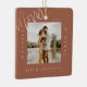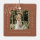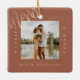 Minimal and modern simple photo keepsake photo ornament to commemorate your first Christmas married. The design features a simple minimal design with a square photo design to display your special wedding photo. "Married & Merry", year and couple's name displayed in a simple modern design around the photo. Two photo ornament with one photo on one side and a second photo on the other side of the ornament.
