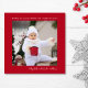 Minimal Modern Merry Christmas Photo Red Holiday Card
