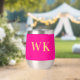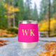 This is a minimal, modern, two initials, monogram design. It is in trending hot pink and gold. The monogram letters are in simple and stylish modern typography. Perfect as a personalized gift or ideal as a new drinkware accessory for yourself. To personalize, simply add your initials by typing them into the personalize this text box. To customize further, check the design editing tool, where you can change the colour or font. If you need help with personalisation, matching products, or for a custom design, contact me via zazzle chat or email: ursuladawnmoon@gmail.com