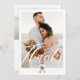 Thank your wedding guests with our modern and minimal two-photo wedding thank you card. The design features a large photo on the front with "Thanks" displayed in a modern script. Modern arch palm tree monogram design to customize with couple's monogram. The reverse side features a second photo with a "Love" script overlay and personalized with your own thank you message. Design by Moodthology Papery