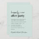 Minimal modern light mint green marriage announcement combined with a reception invitation featuring "Happily Ever After Party" in a contemporary script and bold trendy typography. Personalize your announcement and reception invitation and add your names in a signature-like script. On the reverse side, input the URL address of your wedding website to create a QR code for your guests to scan to RSVP online and obtain all the details.