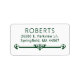 Minimal modern dark green on white return address labels featuring a classic sans serif font above a clean lined scroll for an elegant, minimal feel.