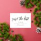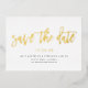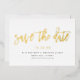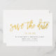 This modern yet elegant save the date announcement features a classic white background, the greeting "save the date" and your wedding date in gold foil, with your info beneath in black. You can customize this design even further by adding another photo or additional text to the back. Foil is available in gold, silver, or rose gold and absolutely shines!