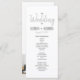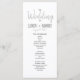 Simple, minimalist, black and white, modern script wedding program, with photo of the couple at the back.