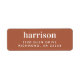 Terracotta return address label with your family name in bold minimal modern white lettering.