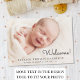 Minimal modern photo birth announcement to announce the arrival of your baby to family and friends. Your newborn's photo fills the front and is overlayed with "welcome!" in a contemporary script (you can move this text to another area on the card depending on your photo by selecting "customize further"). Add his or her name, arrival date and birth stats below. On the reverse side, add four additional photos, a "welcomed by" message and the parent's and siblings first names.