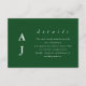 Minimal Monogram Emerald Green Wedding Detail Enclosure Card