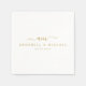 Minimal, monogram, handwriting font, white, wedding napkin. Personalized with your name and date.