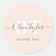 Minimal Monogram Modern Script Blush Thank You Classic Round Sticker