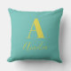 Minimal Monogram Name Teal Yellow Throw Pillow