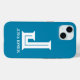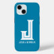 This minimal monogram teal iphone 15 case is trendy yet and professional. It features your first initial in a bold trendy font and your name in a coordinating classic font in white. It's stylish and chic.