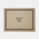 A doormat featuring a minimal style monogram framed in the centre. Underneath this towards the bottom is the established date of your family. The background contains a faux tan burlap pattern reminiscent of canvas fabric. The outside border frame is a deeper brown colour along with the monogram.
