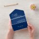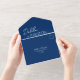 Minimal Navy Blue QR Code Modern Wedding All In One Invitation