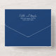Modern navy blue QR Code all in one wedding invitation featuring a simple and minimal design with the bride's name in an elegant script and the groom's name in a contemporary sans serif font. Below in the lower right corner are your event details in a minimalist layout. If you prefer, the QR code may be removed in the design editing tool.
