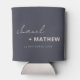 Minimal Navy Blush Black Script Typography Wedding Can Cooler