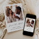 This simple, minimalist Save the Date card features a square photo above the words "Save the Date" in elegant black handwriting script, followed by the couple's names, wedding date and city in sans serif font on a white background. Add a more detailed message with additional information on the reverse.