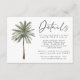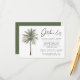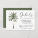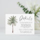 Tropical wedding details card featuring a single palm tree illustration on the left side of the design. "Details" is displayed in a black handwritten script with your wedding details shown below. The palm tree wedding details card was designed to coordinate with our Minimal Palm Tree wedding collection.