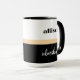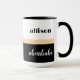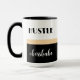 Hustle like a boss babe Mug. A modern, chic design with bold typography on a black and white background divided by a champagne gold-coloured border. Personalize the mug with your name on the back.