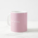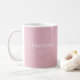 A modern minimalist personalized mug featuring a soft pastel background, elegant white lettering, and a delicate heart detail.